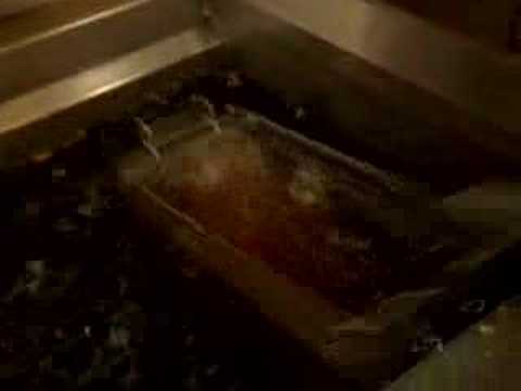 Fish and chips man Mat Arnfield who works the fryers at A salt and Battery in New York batters Bobby Flay in this best in the series throwdown cook off for the food network channel 3/15/2007.